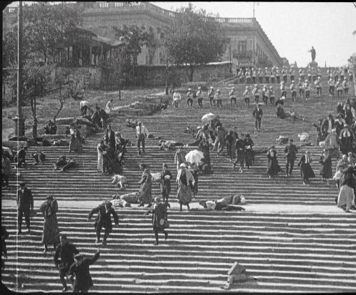 Vielleicht der beste Treppen-Witz der Filmgeschichte: Wenn Brian De Palma in „The Untouchables“ in einem Chicagoer Bahnhof Al Capones Gangster ins Feuergefecht gegen die Polizei schickt, dann zitiert er detailgenau Eisensteins „Panzerkreuzer Potemkin“, wo die zaristischen Kosaken auf der Hafentreppe
