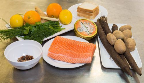 Lachs auf einem Schwarzwurzel-Kartoffel-Bett (für 4 Personen)
