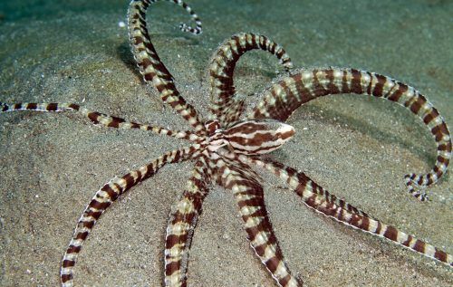 „Nur im Fasching in eine andere Rolle schlüpfen? Das reicht mir nicht. Ein Mimik-Oktopus wie ich verkleidet sich andauernd. ,Karnevalstintenfisch‘ werde ich darum manchmal auch genannt. Es gibt zwar viele Tiere, die so tun, als seien sie wer anders. Die meisten von ihnen müssen aber ein Leben lang m