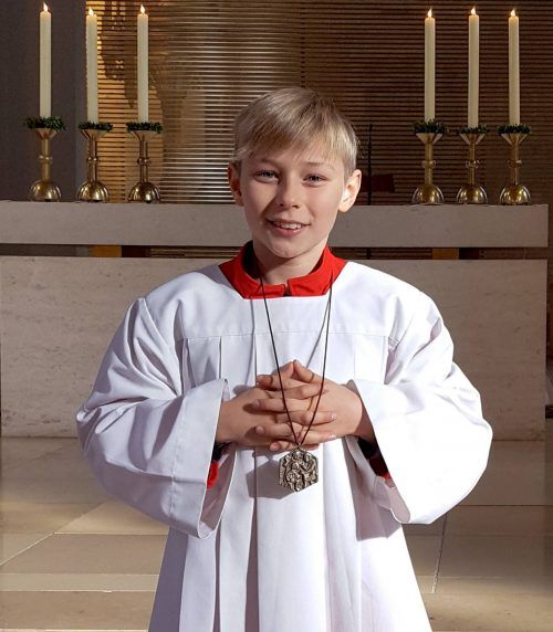 „Ich bin schon seit zwei Jahren Ministrant – und das Schönste dabei ist, dass ich den Gottesdienst mitgestalten kann. Zu meinen Aufgaben gehört die Gabenbereitung, die Kollekte, der Weihrauch und das Tragen der Kerzenleuchter.