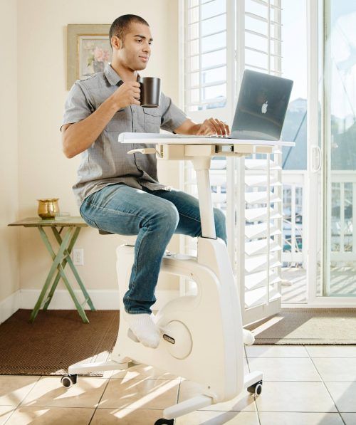 Schreibtisch zum Radeln Für viele Büroarbeiter sieht der Alltag so aus: Erst den ganzen Tag am Schreibtisch – und abends ins Fitnessstudio. Die US-Firma Flexispot findet aber: Das geht auch gleichzeitig und hat mit dem Flexispot V9 einen Fahrradschreibtisch nach Deutschland gebracht. Laut Hersteller