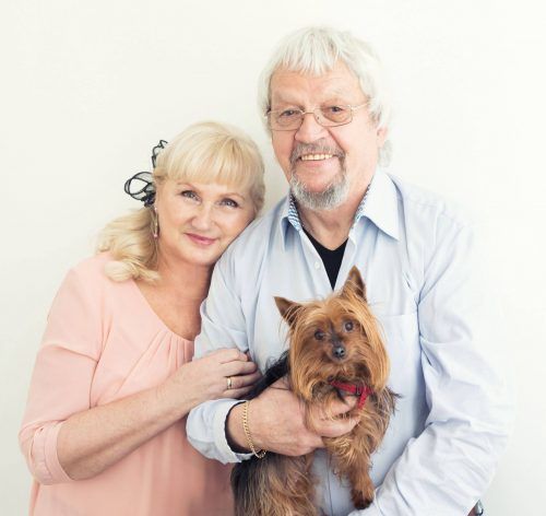 Für Liebe ist es nie zu spätSo lautet das Motto von Christine Jeske, 71, und Manfred Erhardt, 80, aus Altötting, hier mit Hund Hexi. Christine hat jahrelang Vollzeit geschuftet und allein zwei Kinder großgezogen. Für die Kinder ist sie eine „Heldin“. Für ihren Manfred die Traumfrau.