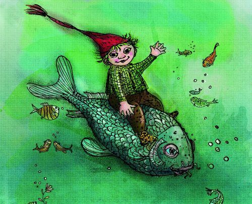 Tief hinab geht es in diesem Buch, unter die Wasseroberfläche eines Sees in eine andere Welt: in die des kleinen Wassermanns. Der Bub mit der roten Zipfelmütze und den grünen Haaren wohnt mit seinen Eltern am Seegrund, reitet auf Fischen – und hat sogar zum extraschnellen Kraulen Schwimmhäute zwisch