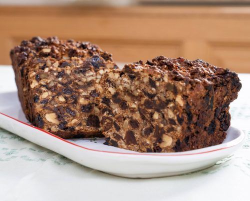 3 Eier 200 g Zucker 100 g Zitronat 100 g Orangeat 250 bis 375 g Feigen 500 g Walnüsse 500 g Sultaninen 500 g getrocknete Zwetschgen (einweichen und kochen) 2 Päckchen Vanillezucker etwas Rum 375 g Mehl 1 Päckchen Backpulver 2 Teelöffel Zimt 1 Messerspitze Nelken 1 Messerspitz