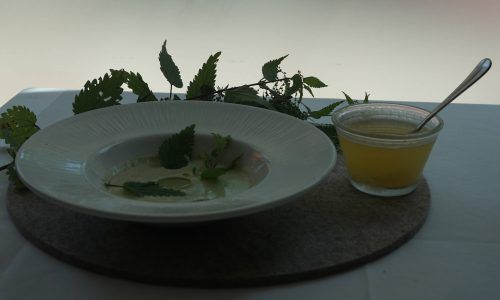 Heute: Brennnesselkaltschale mit Leinölgelee und Weißbier & Saure Nierchen