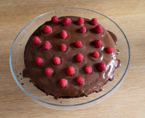 Veganer Schokokuchen ohne Rohrzucker, im Sommer auch mit Beeren