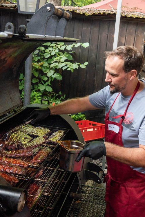 Am Feuer geht es urig zu. Und das aus gutem Grund. Josh Jabs: „Die Zubereitung von Fleisch über Feuer ist die älteste Garmethode der Welt.“ Wer gemeinsam am Feuer steht, duzt sich, verkündet der Smoke-Profi deshalb und wetzt gleichzeitig lachend das Messer. Ohne die geht es nich
