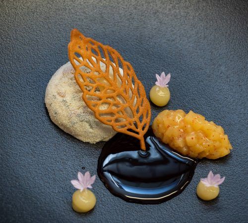 200 g gemischte Nüsse und Kerne (z. B. Mandeln, Paranüsse, Pistazien und Walnüsse) 100 g weiße Schokolade je 50 g Orangeat u. Zitronat 25 g Cranberrys, getrocknet 4 frische Eigelb 75 g Zucker 2 Vanilleschoten 500 g Schlagsahne für die Hippen: 300 g Butter, flüssig 300 g Zucker 300 g Eiweiß 330 g Me