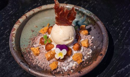 Schokoladenschnee dunkel 250 g Sahne (35 Prozent Fett) 730 ml Wasser 75 g weiße Schokolade 260 g dunkle Schokolade, 64 Prozent Schokoladenanteil (z.B. Chocolate Manjari von Valrhona) 75 g Kakaopulver Schokoladenschnee weiß 65 g Sahne (35 Prozent Fett) 200 ml Wasser 20 g weiße Schokolade 40 g Kakao