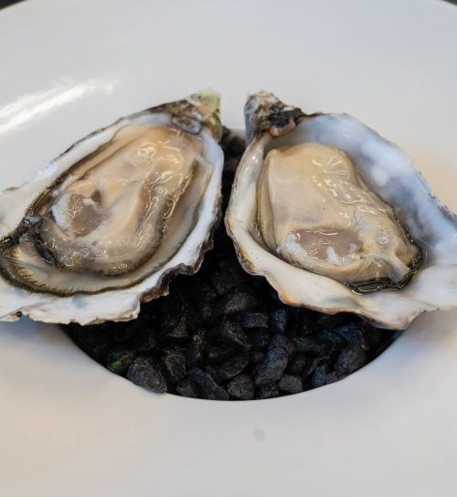8 Gillerdeau Austern No. 2 Für die Sauce: 2 Schalotten, geschält und in Ringe geschnitten 2 Petersilienwurzeln, geschält und in kleine Würfel geschnitten 50 g Butter 200 ml Weißwein 400 ml Gemüsefond 250 ml Buttermilch 100 g Creme fraiche 1 großer Bund glatte Petersilie Salz Cayennepfeffe