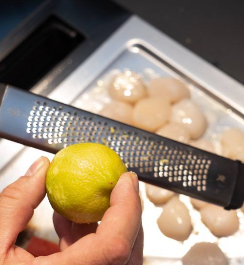 Salat von der Melone mit gebratener Zucchini und Jakobsmuscheln