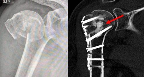 München – Chirurgie kann Puzzlearbeit sein. Zum Beispiel, wenn wegen Osteoporose ein Knochen vielfach gebrochen ist, wie Sie es auf dem linken Bild oben sehen, Es zeigt die zerborstene Schulter einer älteren Dame, die beim Gassigehen gestürzt ist. Auf der rechten Seite sieht man das Bild derselben S