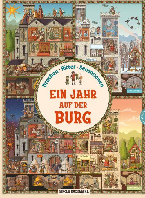 Dieses Wimmelbuch bietet ein ganzes Jahr lang einen unterhaltsamen Such-Spaß mit Drachen, Rittern & Co. Für jeden Monat ist eine Doppelseite reserviert, auf der das turbulente Leben auf einer Burg gezeigt wird. Insgesamt 35 Figuren bevölkern die Festung, darunter König Bolebor und seine Gemahlin Dro