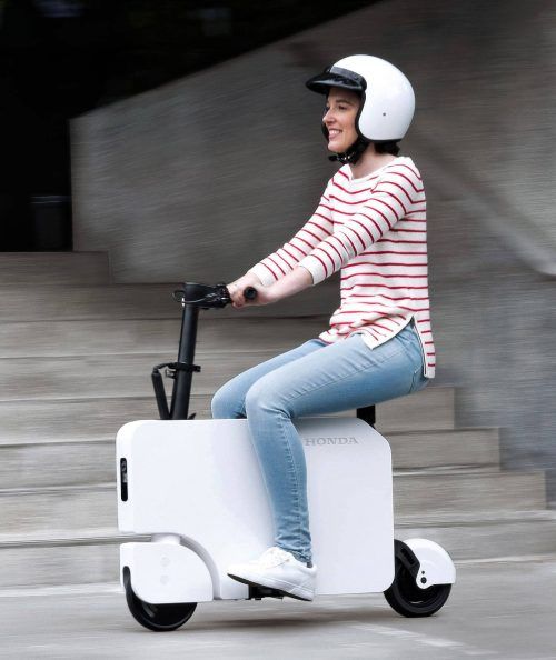 Wenn es nach Honda geht, ist diese „Koffer-Vespa“ eine Revolution und die Zukunft des sauberen Verkehrs in der Stadt – und zwar sitzend statt stehend. Die Japaner haben jetzt nämlich ihren faltbaren E-Roller Motocompacto vorgestellt, der die Technik eines Scooters in einen Koffer packt. Der lässt si