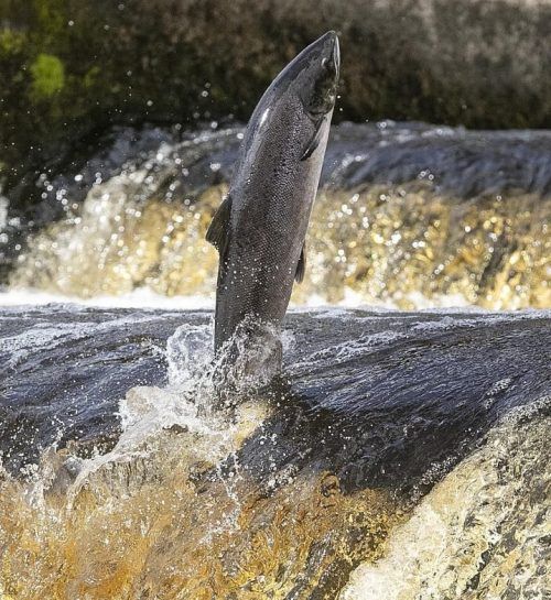 Lachs an einer Fischtreppe. © Owen Humphreys/dpa