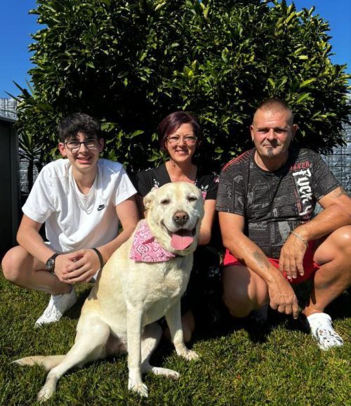 Neustart ins Leben ohne Schmerzen: Raphaela Bauer mit Sohn Dominik, Lebensgefährte Markus und Hündin Dalia. © privat