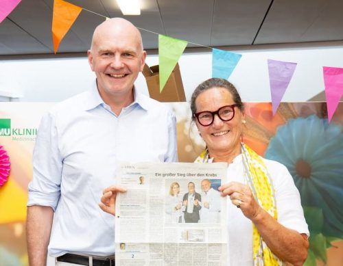 Das ist der Artikel, durch den Gabriela Mühlpointner zur Car-T-Zelltherapie fand. Prof. Michael von Bergwelt freut das. © LMU
