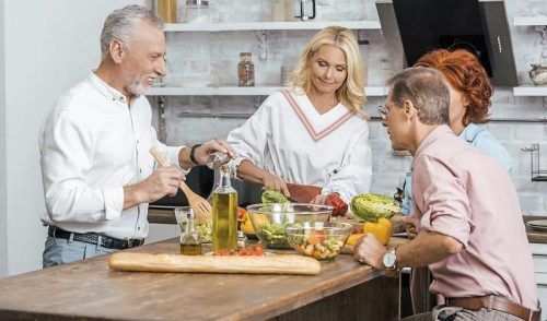Gesund kochen macht Spaß: Freunde bei einer Küchenparty. © Foto: Panther Media