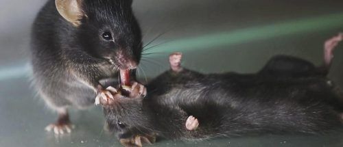 Foto aus der Studie: Eine Maus kümmert sich um einen bewusstlosen Artgenossen. © Wenjian Sun And Guang-wei Zhang/dpa