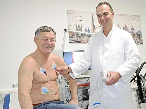 Wie beim EKG: Hier legt Dr. Milan Dinic seinem Patienten Anton K. die Cardisiografie-Elektroden an. © SIGI JANTZ