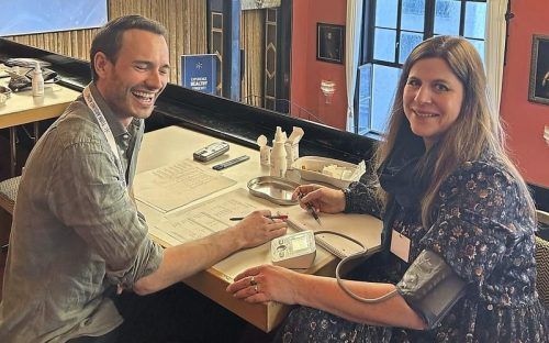 Dr. Alexander Auer misst den Blutdruck von Susanne Sasse. © svs