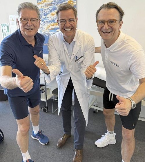 Top-Ärzte beim Herz-Check im TUM Klinikum: Prof. Martin Halle (Mitte) untersucht Prof. Markus Krane (rechts) und Dr. Martin Siess. © Fotos: Dr. Elda