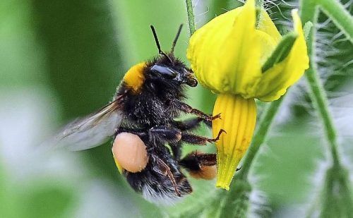 Hummeln sind besonders kräftig: Sie umschließen die Tomatenblüte und bringen sie zum Vibrieren. Erst dan
