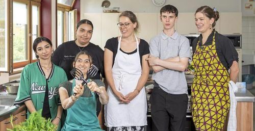 Gemeinschaft am Herd: Ein Teil der Kochgruppe mit Antje de Vries (r.) und Lehrerin.