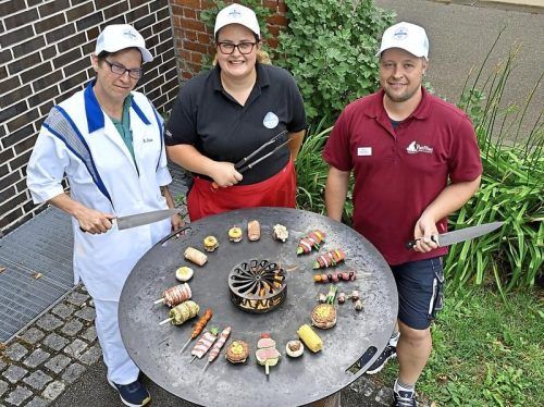 Kunterbunte Vielfalt: Ausbilderin Ramona Holzmann (Mitte) zeigt den Teilnehmern, was man alles auf den Grill legen kann.