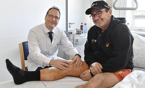 Masterplan für schnelle Heilung: Professor Rüdiger von Eisenhart-Rothe (links) untersucht seinen Patienten Robert Wilpernig (rechts). © Fo
