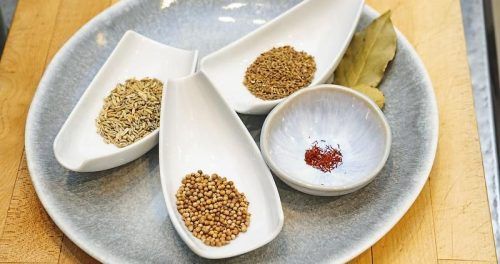 je 2 gute Prisen Fenchelsamen, Korianderkörner, Anissamen