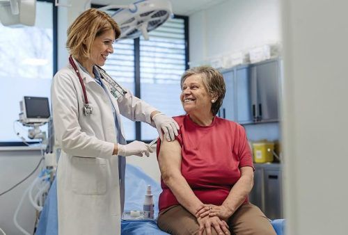 Schutz vor Gürtelrose: Eine Frau lässt sich gegen Gürtelrose impfen. © Fotos: Smarterpix, GSK