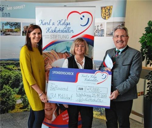 Die Karl-und-Helga-Höcketstaller-Stiftung spendet regelmäßig seit dem Jahr 2010 zur Förderung von Erziehung, Bildung und Ausbildung von Kindern im Landkreis Mühldorf, die in sozial schwachen Familien aufwachsen. Geschäftsführerin Petra Höcketstaller überbrachte Landrat Georg Huber einen Scheck in Hö