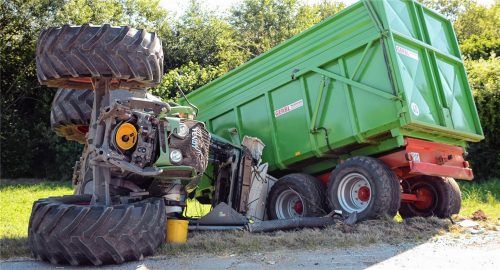 Trotz seiner Größe hat ein Autofahrer am Samstag gegen 9 Uhr ein Traktorgespann übersehen. Ein Zusammenstoß ließ sich nicht mehr vermeiden. Laut Polizei wollte der Fahrer in der Ortsmitte von Wiesbach links abbiegen, stieß dann mit dem Traktor zusammen. Durch den Unfall kippte das Gespann in den Str