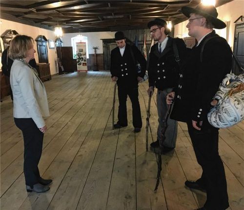 Gleich drei Zimmerer waren vor kurzem im Mühldorfer Rathaus zu Besuch, um Bürgermeisterin Marianne Zollner ihren Wanderspruch vorzustellen. In traditioneller Kluft, mit Wanderstock und Gepäck trafen sich die drei jungen Männer aus Nabburg, dem Schwarzwald und dem niederösterreichischen Waldviertel i