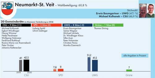 Neumarkt-St. Veit – Der Stadtrat von Neumarkt-St. Veit wird ein bisschen bunter, nachdem es Thomas Döring geschafft hat, für die Grünen im Ort ein Stadtratsmandat zu erringen. Sieben Prozent der Wähler gaben den Grünen ihre Stimme. Nicht die einzige signifikante Änderungen in der Zusammensetzung des