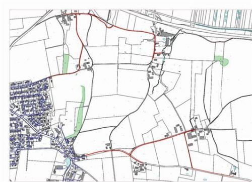 So verläuft die Leitung (rot markiert) im Außenbereich von Obertaufkirchen östlich von Straß und östlich von der Hohenthanner Straße.