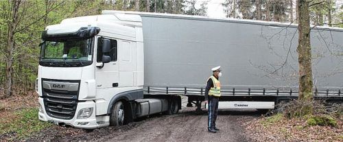 Während die Polizei Haag am Donnerstagnachmittag an der Mü46 nahe Maitenbeth einen Auffahrunfall aufnahm, kam der Verkehr zum Erliegen. Ein rumänischer Lkw-Fahrer konnte das nicht abwarten und versuchte an einer Forststraße zu wenden, wie die Polizei Haag auf Nachfrage der Zeitung erklärt. Der Laste