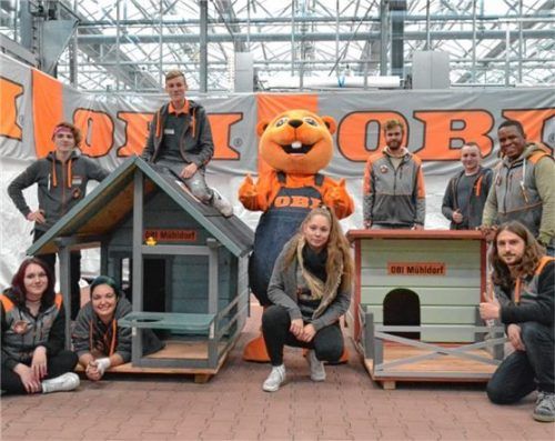 „Mach mal sozial“ lautete das Projekt für die Azubi-Projektwochen 2021 von OBI, das aufgrund von Corona mit nur zehn Auszubildenden unter der Leitung von Tamara Wolf stattgefunden hat. Die Projektgruppe hat während dieser Woche Hundehütten in verschiedenen Größen gebaut. Am Ende wurden diese an den