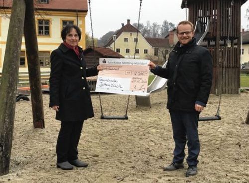 Die Sparkasse Altötting-Mühldorf beteiligt sich mit 2000 Euro an der Sanierung des Spielplatzes in Jettenbach und spendete die Errichtung eines Wasserspiels. „Wir freuen uns sehr über die großzügige Zuwendung und danken der Sparkasse herzlich für ihre Unterstützung“, sagte Maria Maier, Bürgermeister