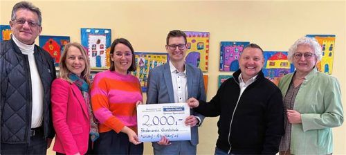 Der Förderverein der Grundschule Mühldorf-Altmühldorf hat eine 2000-Euro-Spende der Sparda-Bank erhalten. Mit diesem Geld können Projekte wie der Schwimmkurs für die ersten Klassen, das Zirkusprojekt oder Theaterbesuche finanziert werden. Das Bild zeigt (von links) den Vorsitzenden des Fördervereins