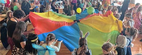 Kinder feiern ausgelassen Fasching mit Tanzeinlagen und vielen Spielen