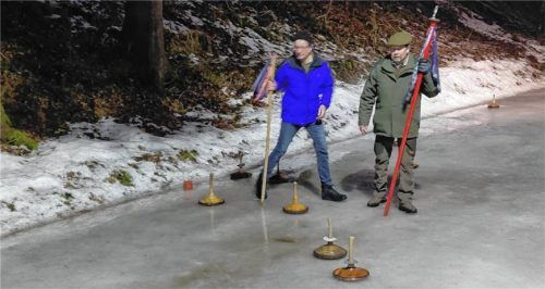 Nach einer sehr langen „Eiszeit“ beendeten die Pollinger Eisschützen ihre Saison mit dem traditionellen Vergleich „Holz gegen Eisen“. Ein in diesem Jahr eher einseitiger Wettkampf, den der „Eisenmoar“ Hans Flötzinger (links) mit seiner Mannschaft für sich entscheiden konnte. Auch die zwei angehängte