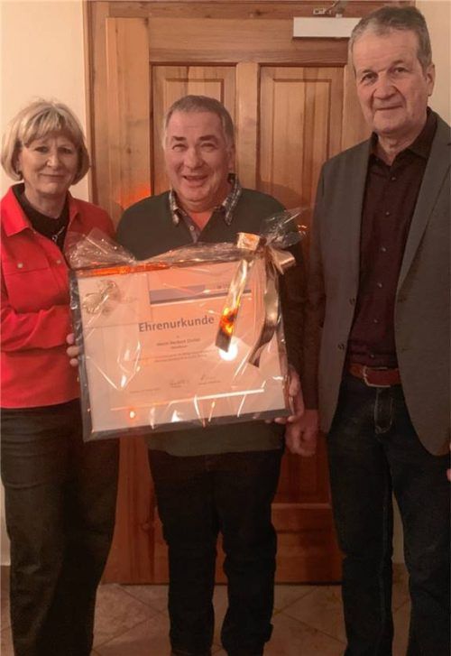 Der Firma Flötzinger ist es ein Anliegen, der Leistung und dem Einsatz ihrer Mitarbeiter die gebührende Anerkennung entgegenzubringen. Gemeinsam mit der Belegschaft und den Familien Flötzinger wurde bei einer Feier im Grünbacher Hof Herbert Distler (Mitte) geehrt, den Firmenchef Hans Flötzinger (rec