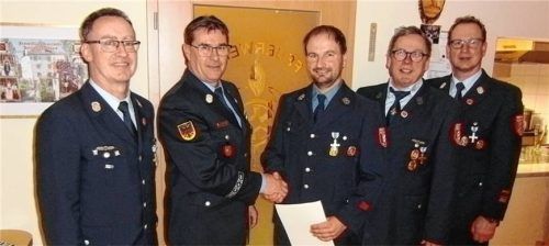 Im Verlauf der Jahresversammlung im Schulungsraum des Feuerwehrhauses holte der Vorsitzende Hermann Wimmer die Ehrung eines seiner Aktiven nach. Bürgermeister Erwin Baumgartner hatte in einer kleinen Feier alle Neumarkter Feuerwehrleute geehrt, die ihren Ehrendienst bereits 25 Jahre abgeleistet hatt