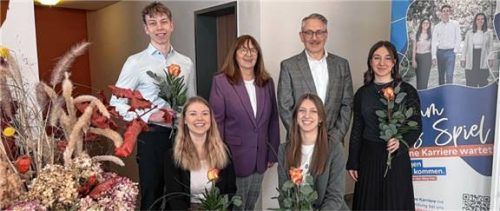 Vier Auszubildende der VR-Bank Taufkirchen-Dorfen haben ihre Ausbildung erfolgreich abgeschlossen und wurden übernommen: Hans Berger, Mirjam Purainer, Lisa-Marie Pfanzelt und Julia Posch. Bei einer Feierstunde gratulierte Vorstand Robert Pyrkosch gemeinsam mit Ausbildungsleiterin Maria Lechner den f
