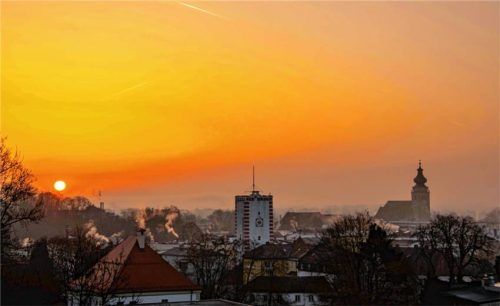 Man nehme etwas Morgennebel, Wüstensand von der Sahara und eine stark leuchtende Morgensonne über Mühldorf. Schon hat man wunderbare Farben und kann beim Frühstück bereits solche Bilder sehen. Foto Mayer