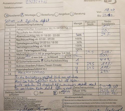 2860 Euro für den Schlüsseldienst