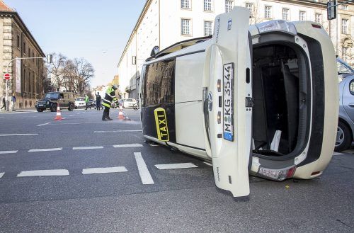 Ein spektakulärer Unfall hat sich am Freitag auf der Prinzregentenstraße (Lehel) ereignet. Ein Peugeot stieß frontal mit einem Taxi zusammen, sodass der Wagen, in dem sich ein Fahrgast befand, auf die Seite kippte und liegen blieb.