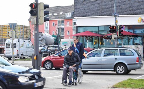 Dietmar Deppisch sitzt seit zwei Jahren im Rollstuhl, ist nach einem Schlaganfall linksseitig gelähmt. Sein Pfleger Gregor Tomczyk kann den 47-Jährigen nicht schnell genug über die breite Kreillerstraße schieben. „Von ungeduldigen Autofahrern werde ich da schon auch mal angehup